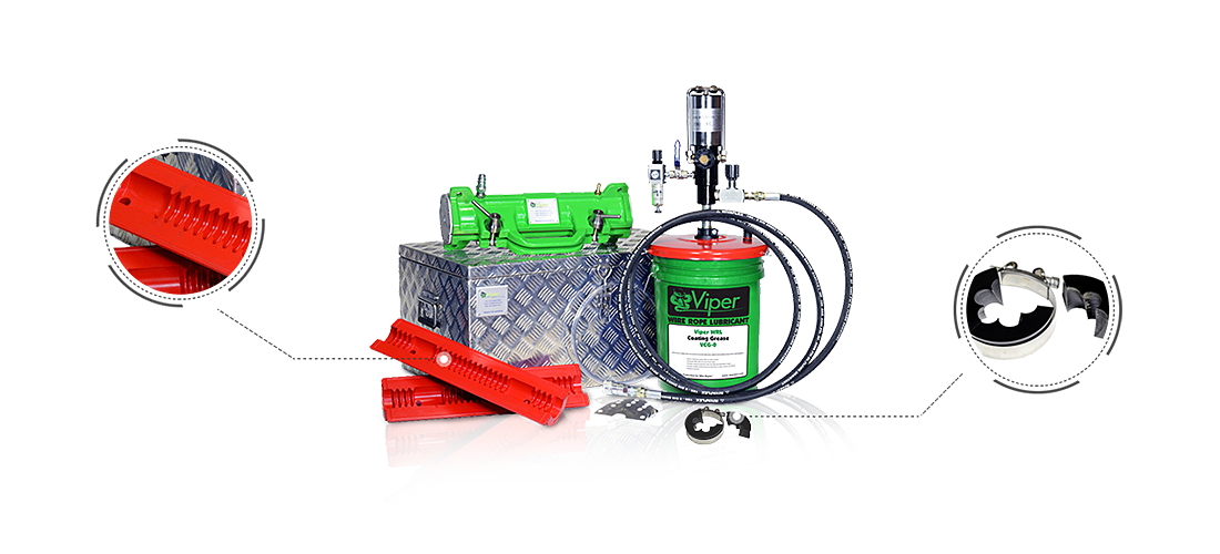 TST-Viper Wire Rope Lubricator provides fast and effective cleaning and lubricating of wire ropes. Wire ropes from 8mm (5/16”) to 165mm (6-1/2”) in diameter can be automatically greased at speeds up to 2,000mt per hour.